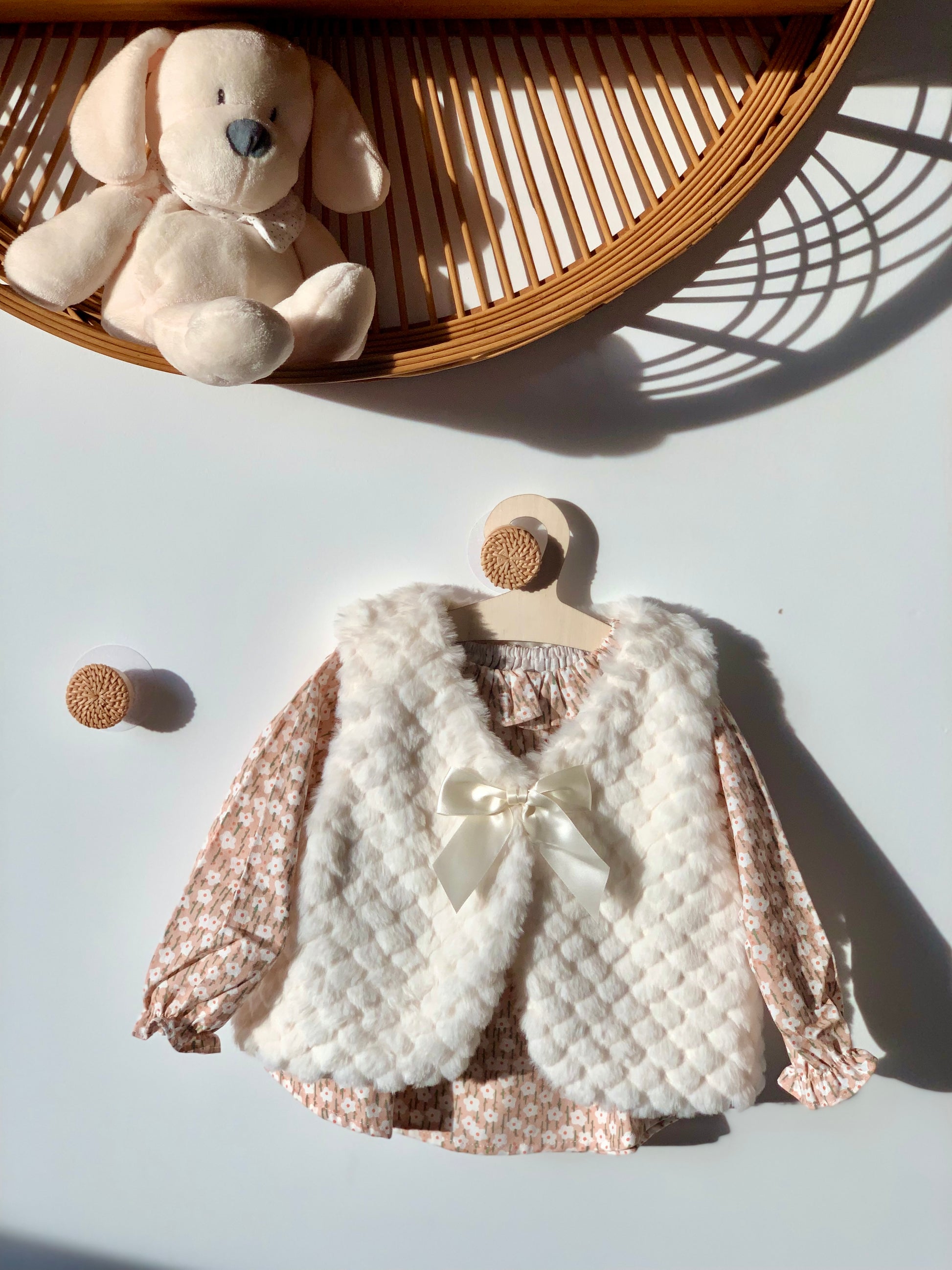 Gilet sans manches doudou blanc – Élégance et confort pour bébé
