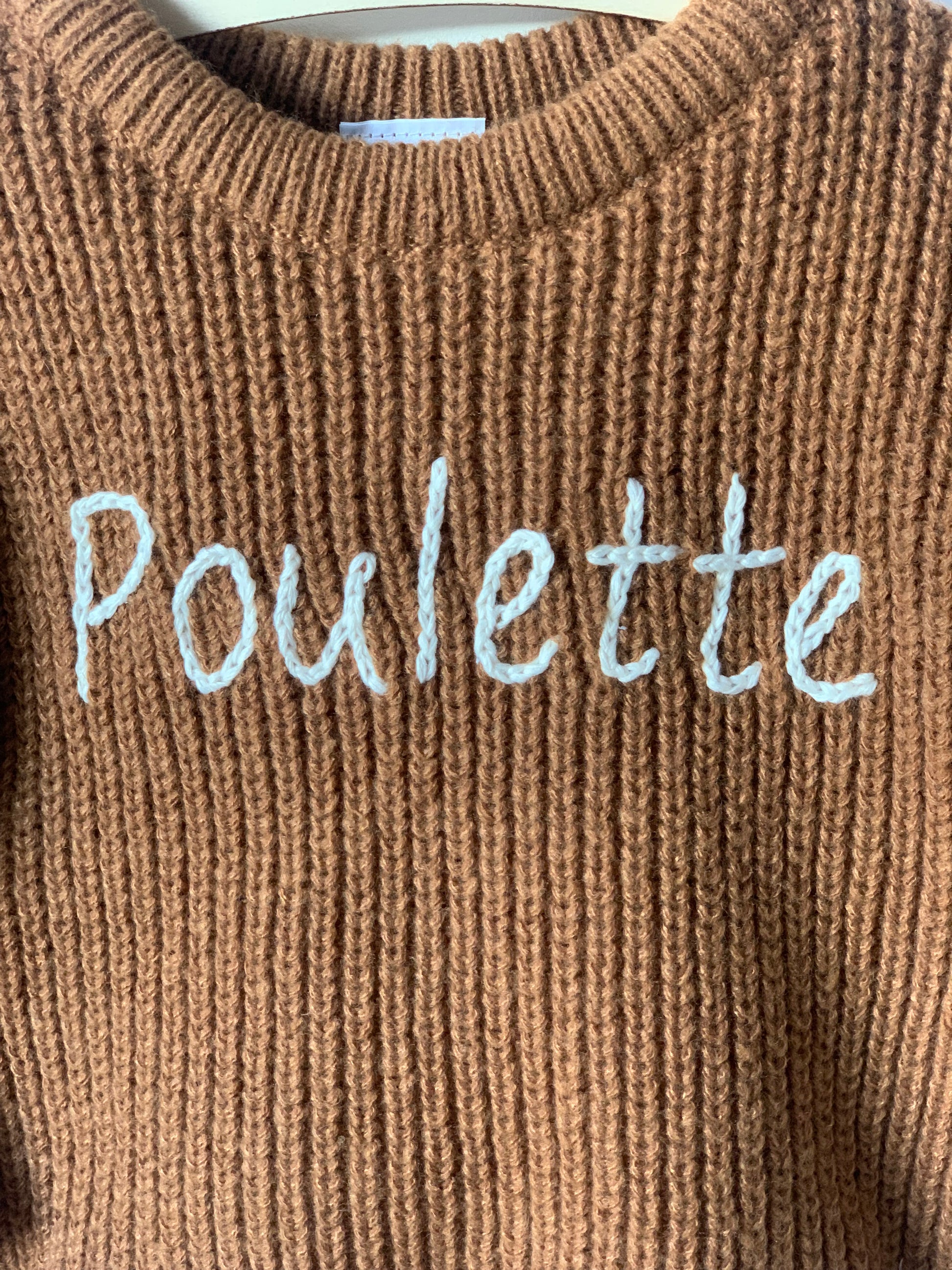 - 🧵 Lettrage : Broderie blanche “Poulette”